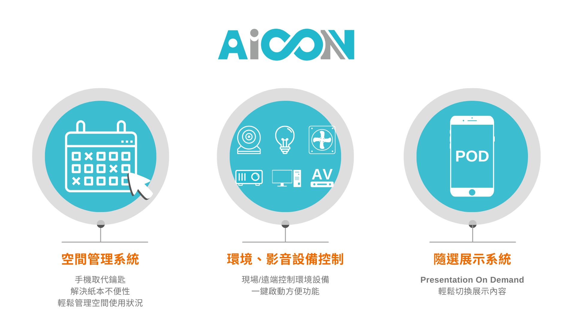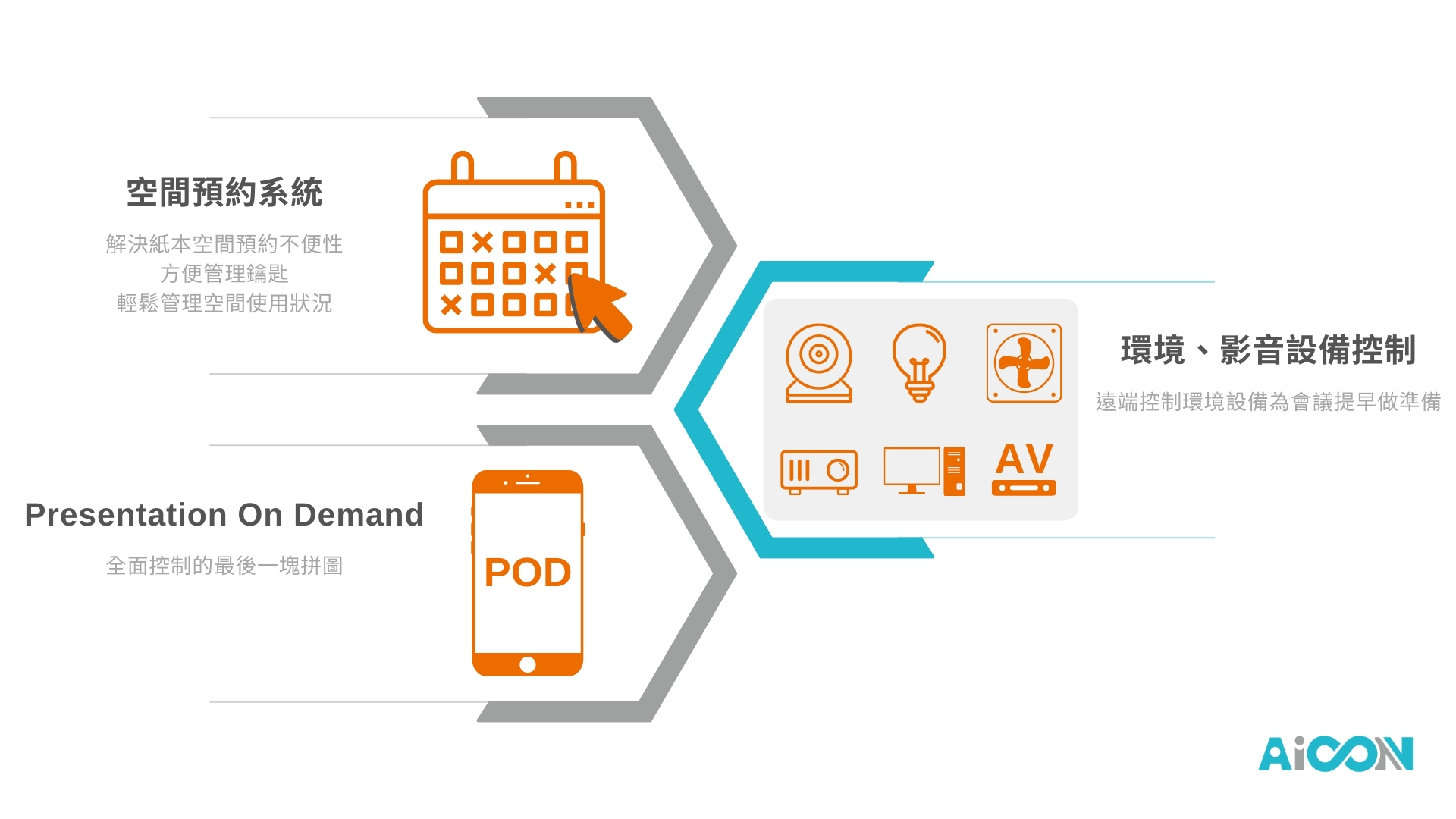 圖片設計的色彩,主要為AiCON的Logo配色:灰色與藍色,而為了讓圖片更加活潑使用了迎桀科技代表色的其中之一:橘色,作為搭配。